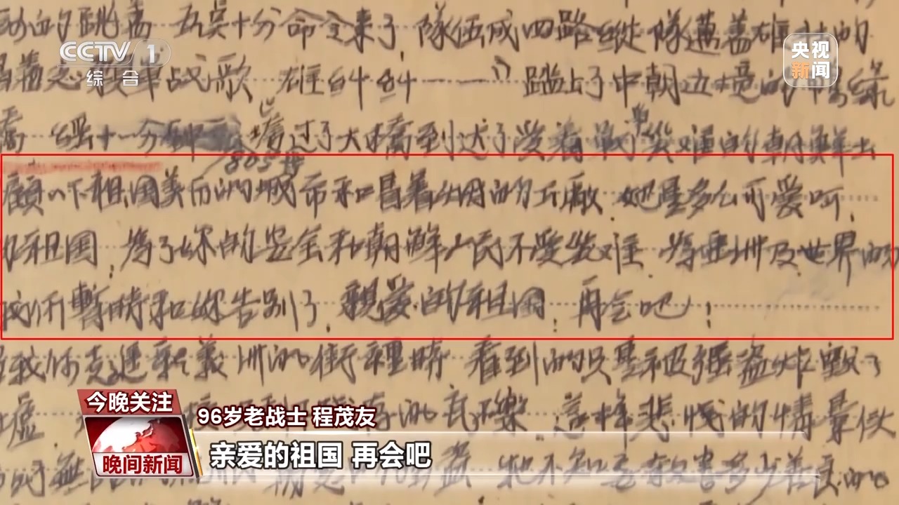 96岁老战士 程茂友:当时年轻,我就好奇鸭绿江究竟有多宽的桥。从桥尾一开始我就记,一共是11分钟805步,我走完就写了一段话。