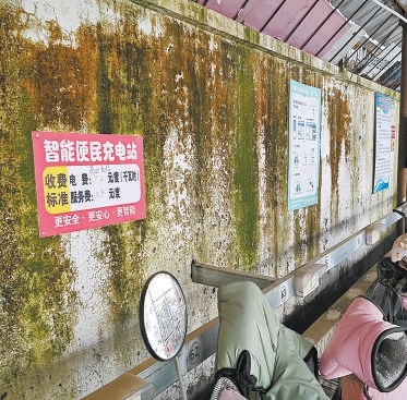 广华轩小区共有三处充电设施,两处充电桩分别位于小区1号楼、3号楼北侧,小区南门外则是一处充电柜。居民告诉记者,南门外的充电柜虽然做到了价费分离和明码标价,但并非所有车主都能使用,“充电柜只能给锂电池充电,铅酸电池则由于体积过大没法从车上取下,只能使用充电桩充电。”